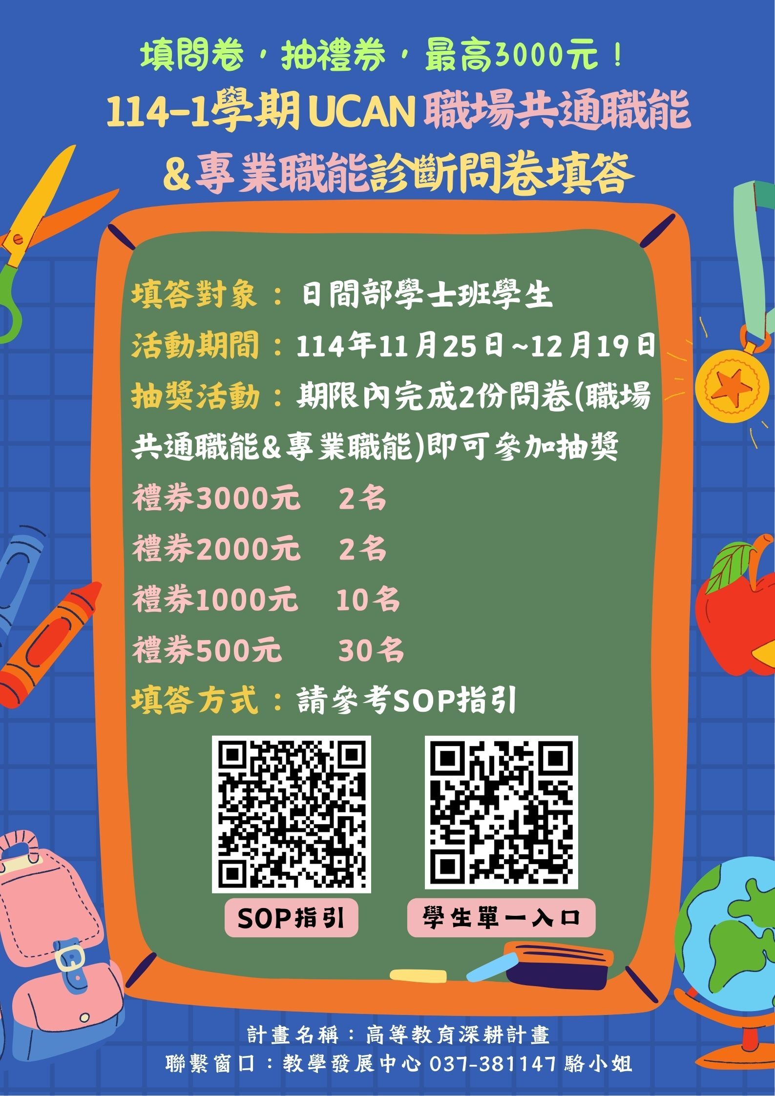 【114-1學期教學評量填答活動&ucan職場共通職能、專業職能診斷問卷填答】